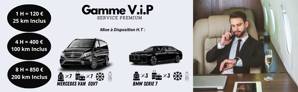 Nos véhicules de prestige, équipés des dernières technologies, sont à votre disposition pour vous conduire en toute sécurité et élégance, quelle que soit votre destination. Réservez dès maintenant votre chauffeur privé et bénéficiez d’un service fiable, ponctuel et parfaitement adapté à vos exigences.